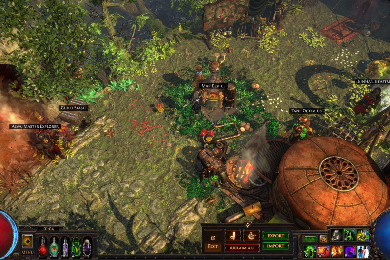 Just a little home I've been putting together for the past four leagues or so. I don't know the exact contents, and it's not great for selling as it's a bit of a hike to get to the stash from the waypoint, but is pretty effecient for mapping.