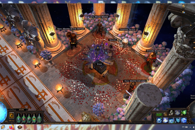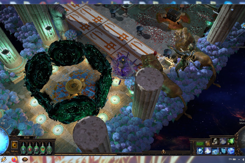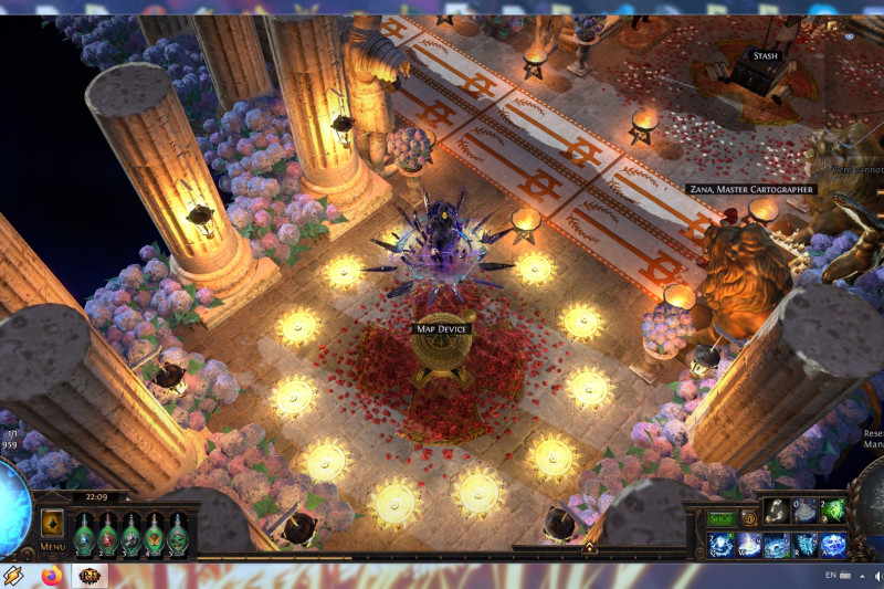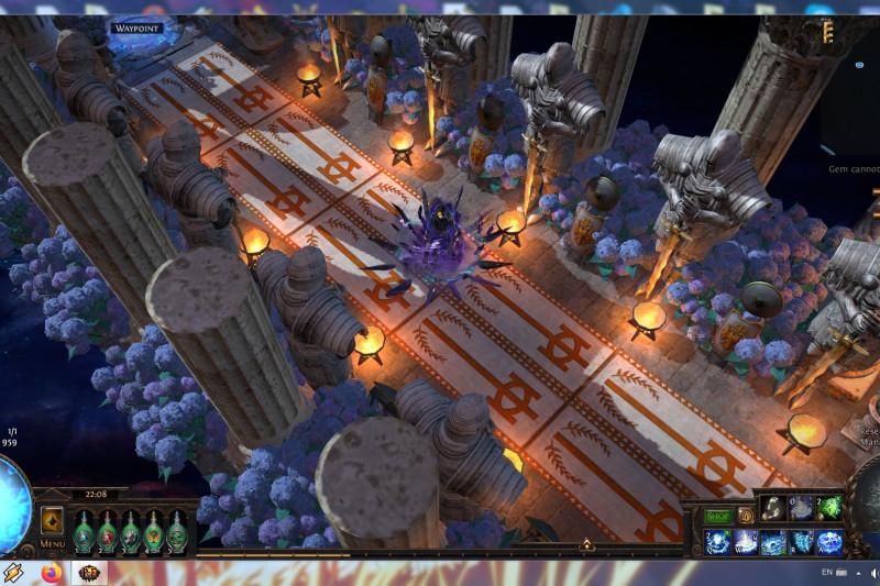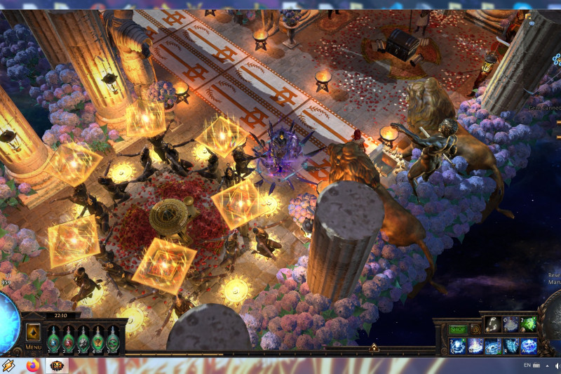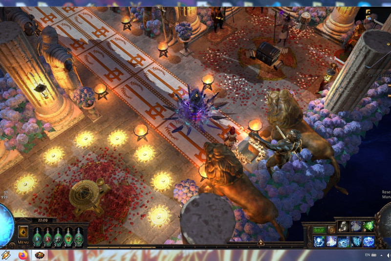 BTW: originally i used the Statue of the Sisters decoration instead the Large Golden Statue+2xGolden Lion Statues because i thought to make it around Solaris vs Lunaris and changing lights and mosaics helped that idea but i decided to stick to what i like more: giant golden statues. Saying that, you are able to easily swap those 3 giant golden statues with Sisters statue with their shiny version and lights you like.Maybe blue carpets instead templar ones and women statues instead Sanctum soldiers. Easy to personalize this way and cheap thanks to GGG's change about decoration prices.