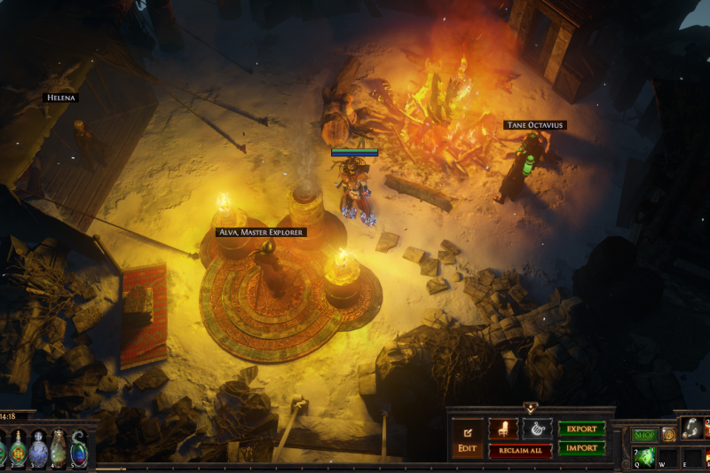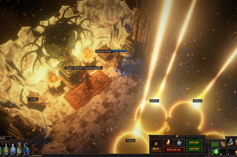 This is a very clean, fully functional and quite efficient hideout which uses the Glacial hideout base. It has efficient placement of map device, zana, crafting bench and stashes, Navali is quite close as well, the rest being further away with enough space to open their portals in their own little areas. It also has room for more decorations to fit in to your liking, as I intentionally left it relatively clean so people can add their own flavor to it.