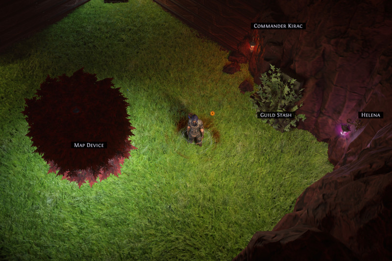 Fairly basic concept with no MTX. All the walls are covered with Kaom Rocks. The horticrafting station is purple with Lotus Stands, the regular crafting bench is blue with energy particles from various Kalguur decorations, the map device is hidden in maple trees. All NPCs are accessible, but hidden in rocks. There is a lantern corresponding to each NPC to signal their position. (Niko and a few other NPCs poke out a bit because of their weapons).