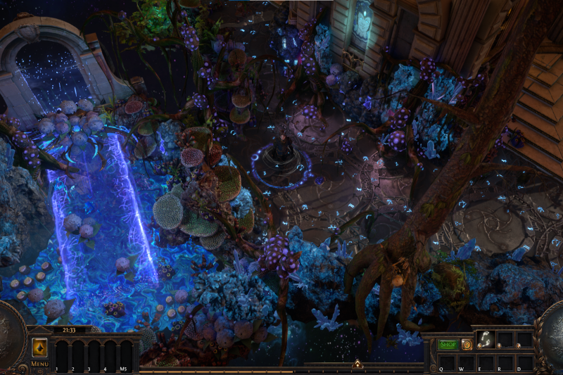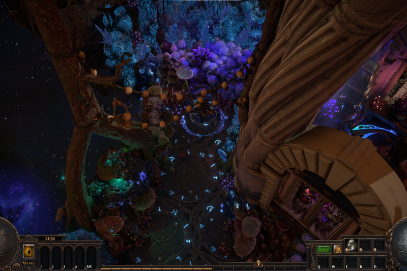 As the putrid forest grew stronger, fueled by corpses of slayed gods, decay spread and the world slowly became uninhabitable. The remainder of mankind found refuge in the last place untouched by the puple-glowing vegetation : the Celestial Temple of Duality. While some try to find a saving grace in books, or in gathering artifacts of the past though the Atlas, others pray for the help of the old gods. But in this tiny bastion of hope, humanity is starting to fall appart..