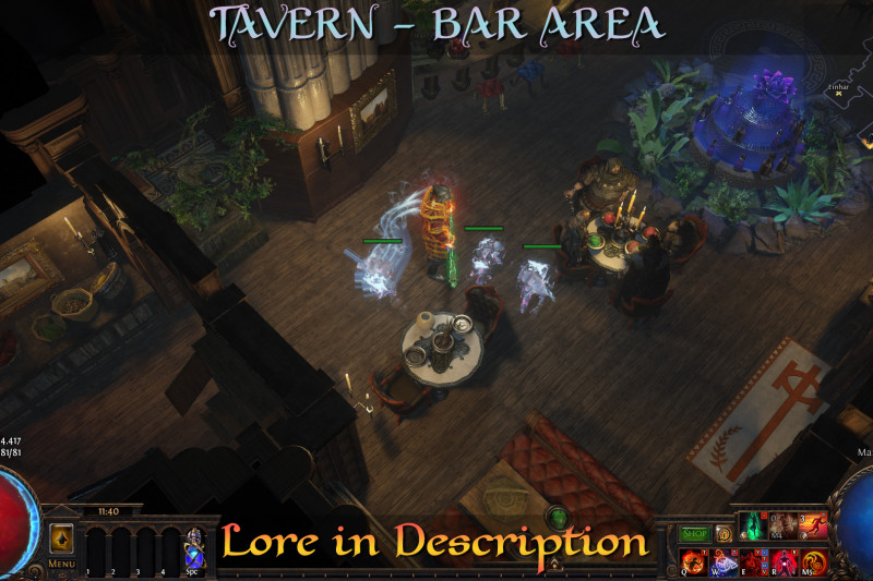 "Ah, indeed," he sighed, his gaze lost in the flickering flames of the fireplace. "This place," he gestured around, "was once a modest brewer's dream. Amir, the founder, was known not for his sword but for his unmatched skill as a distiller, his concoctions were sought after across Wraeclast, making him a fortune.
