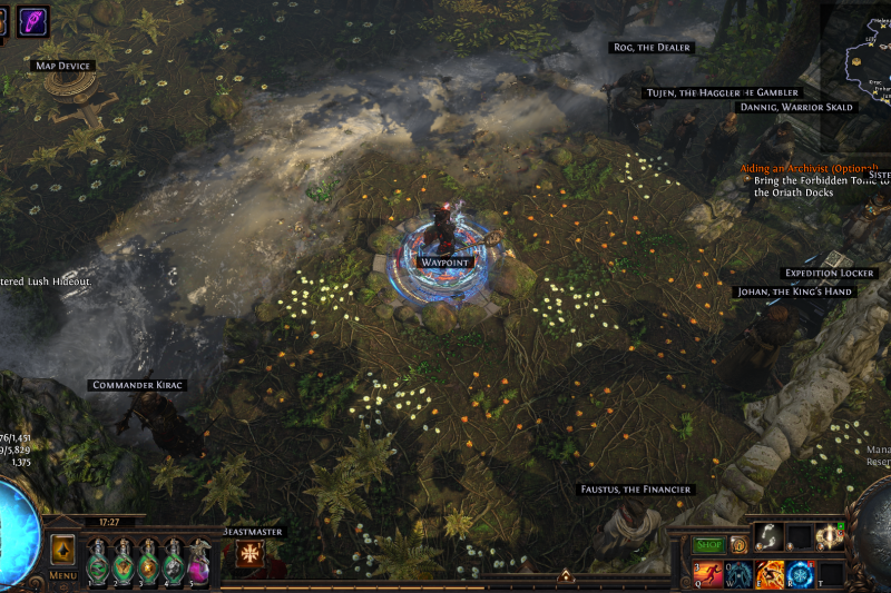 Compact and efficient Lush Hideout with everything you need plus some other Exiles to keep you company.