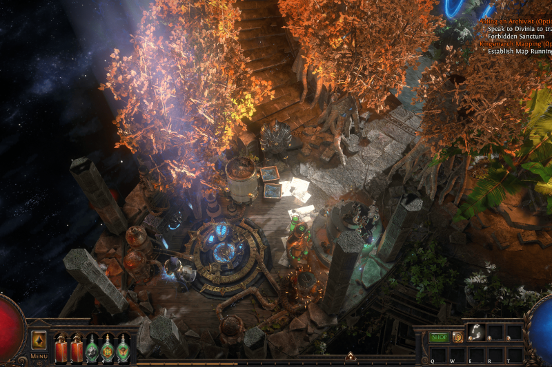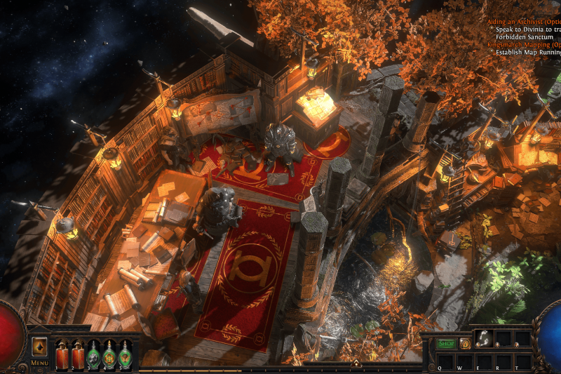 Built upon the overgrown primeval temple safeguarding the back of a cosmic turtle, this hideout aims to be a cosy place to rest.