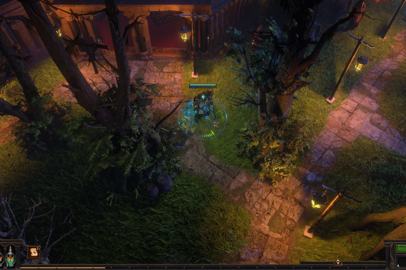 A Tavern hidden in a Forest with an Luxury Dining Area and a nice Path going around the Tavern with Lanterns and Friends