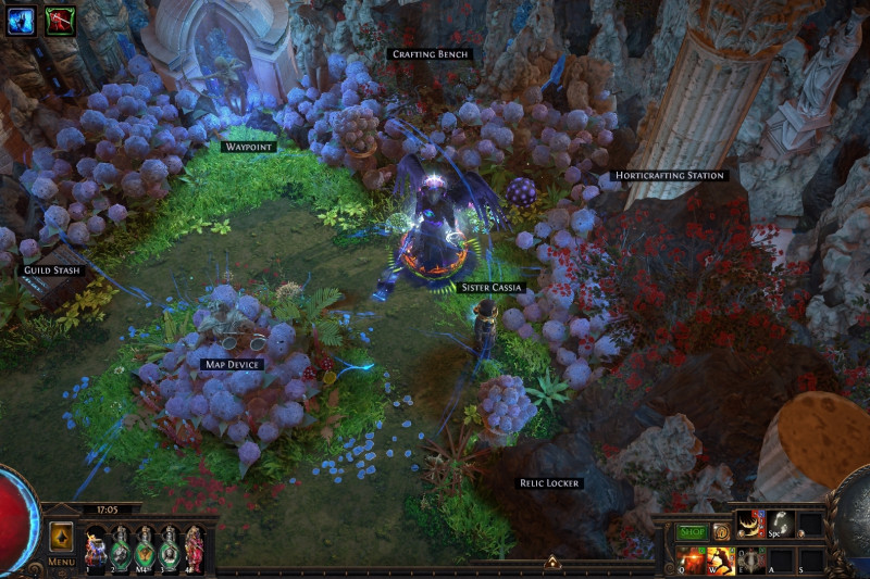 Every vital NPC is here, a short distance from the stash to the Map Device, the bottom left most portal is the one that opens first ensuring you dont have to move, same with having the stash be on the bottom so you dont have to walk around it on map exit, all the storage and crafting is hidden, and Lilly/Faustus exactly where they need to be.