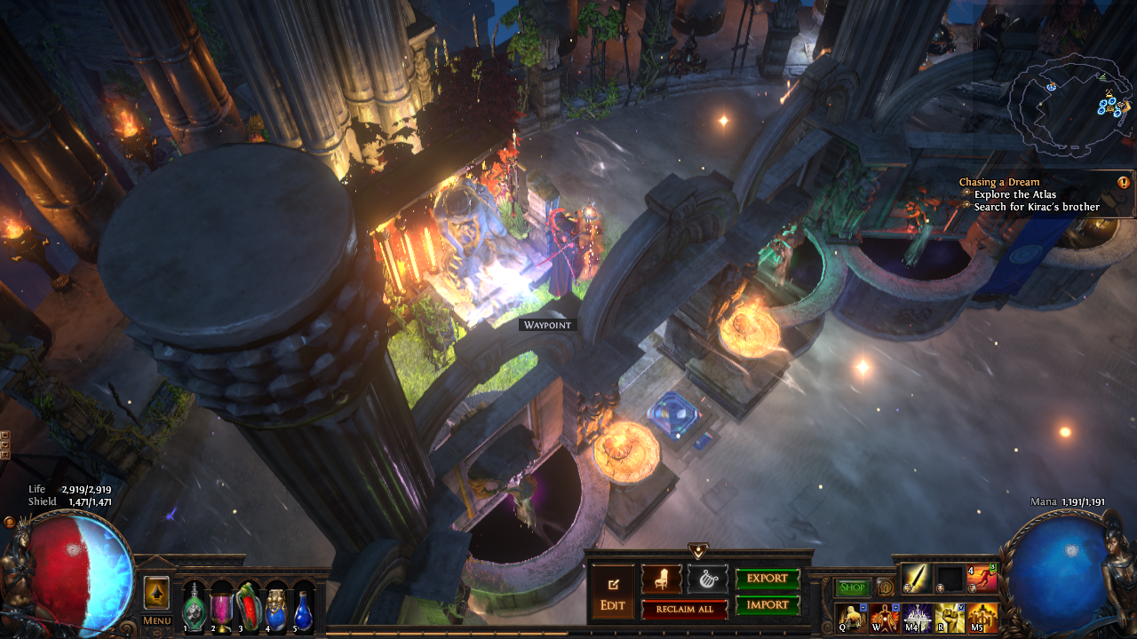 Hideouts allow players to let their creativity run wild. Players can design amazing hideouts and then export them using the import and export features within Path of Exile. To see these options, simply visit your hideout in game.