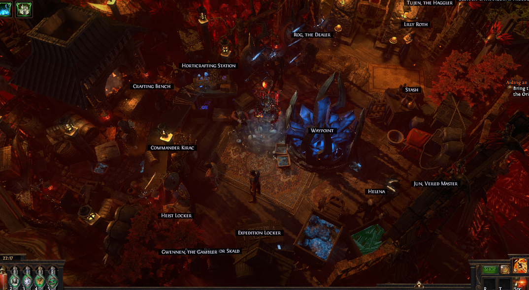 After Helena has been freed, she will let you change hideouts and also help you find new ones! Players can also invite many useful NPCs, such as masters, Helena, Sister Cassia, Kirac, Tane and Expedition league NPCs to their hideout.