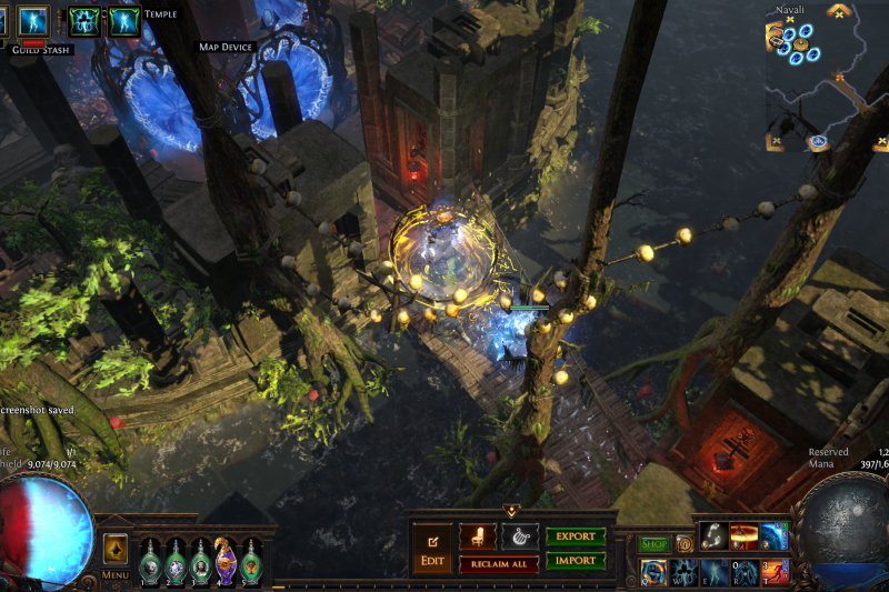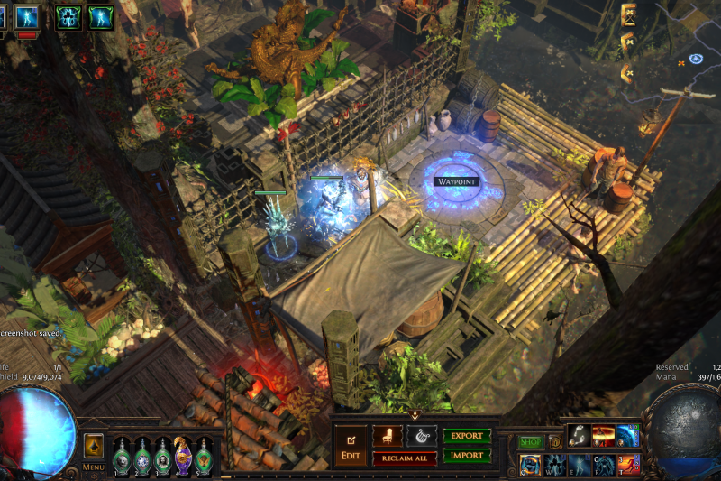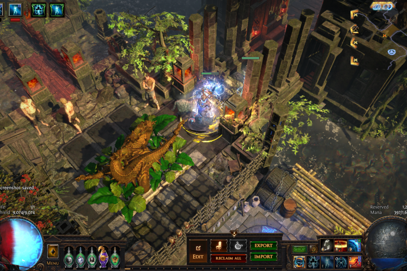An elegant Primal fortress lies deep in the jungle on the banks of a long-unused waterway, reclaimed and repopulated by your exile and their allies.