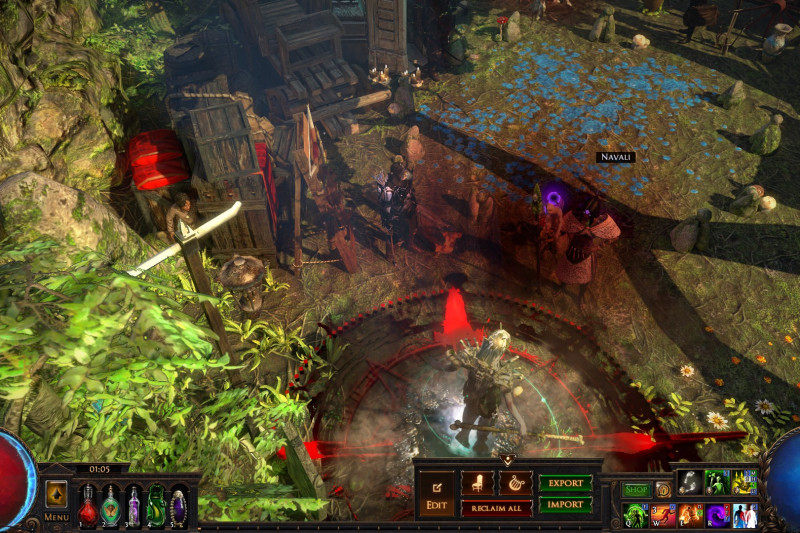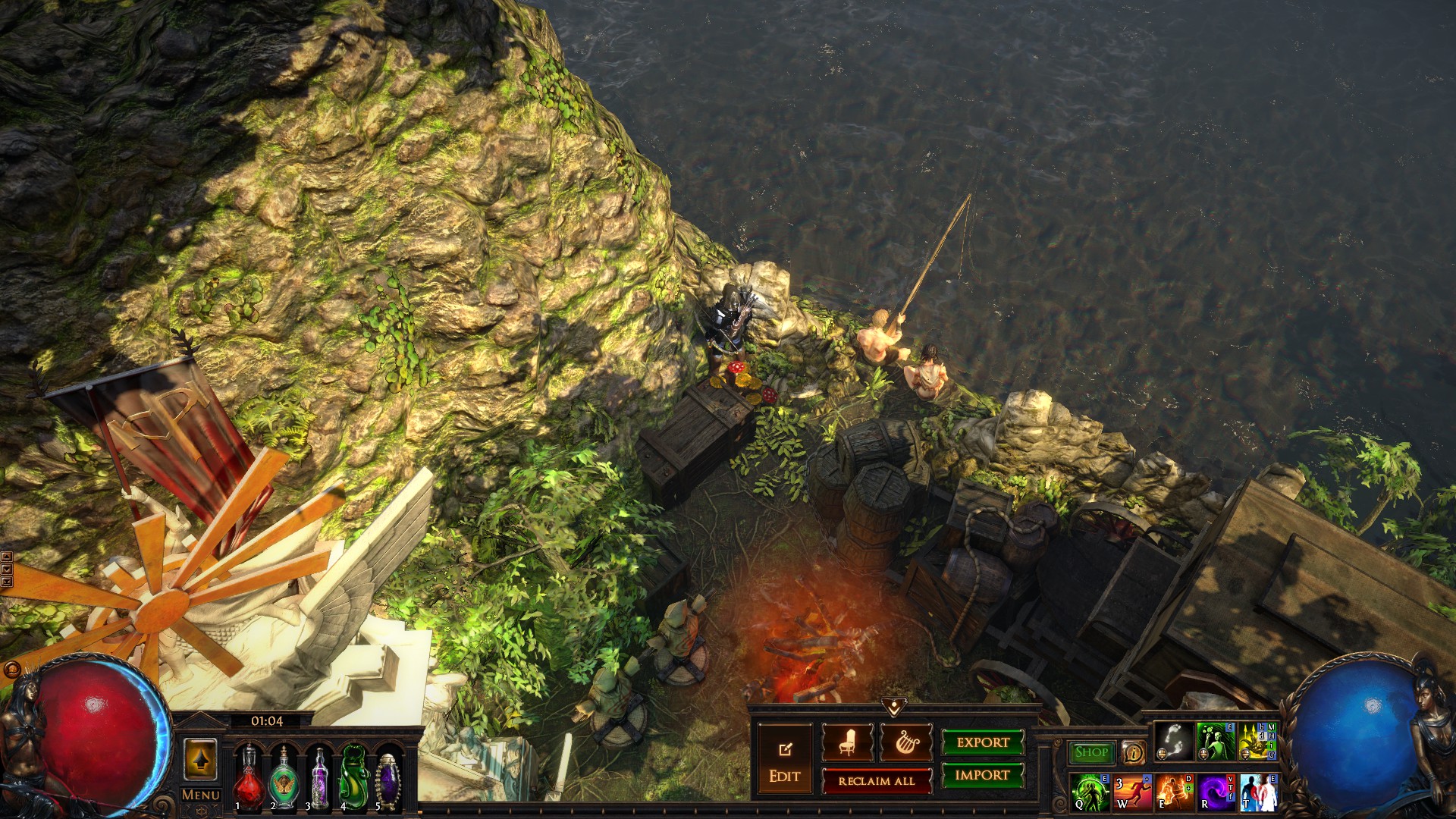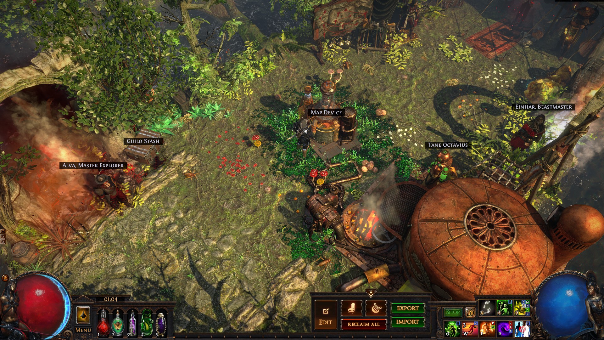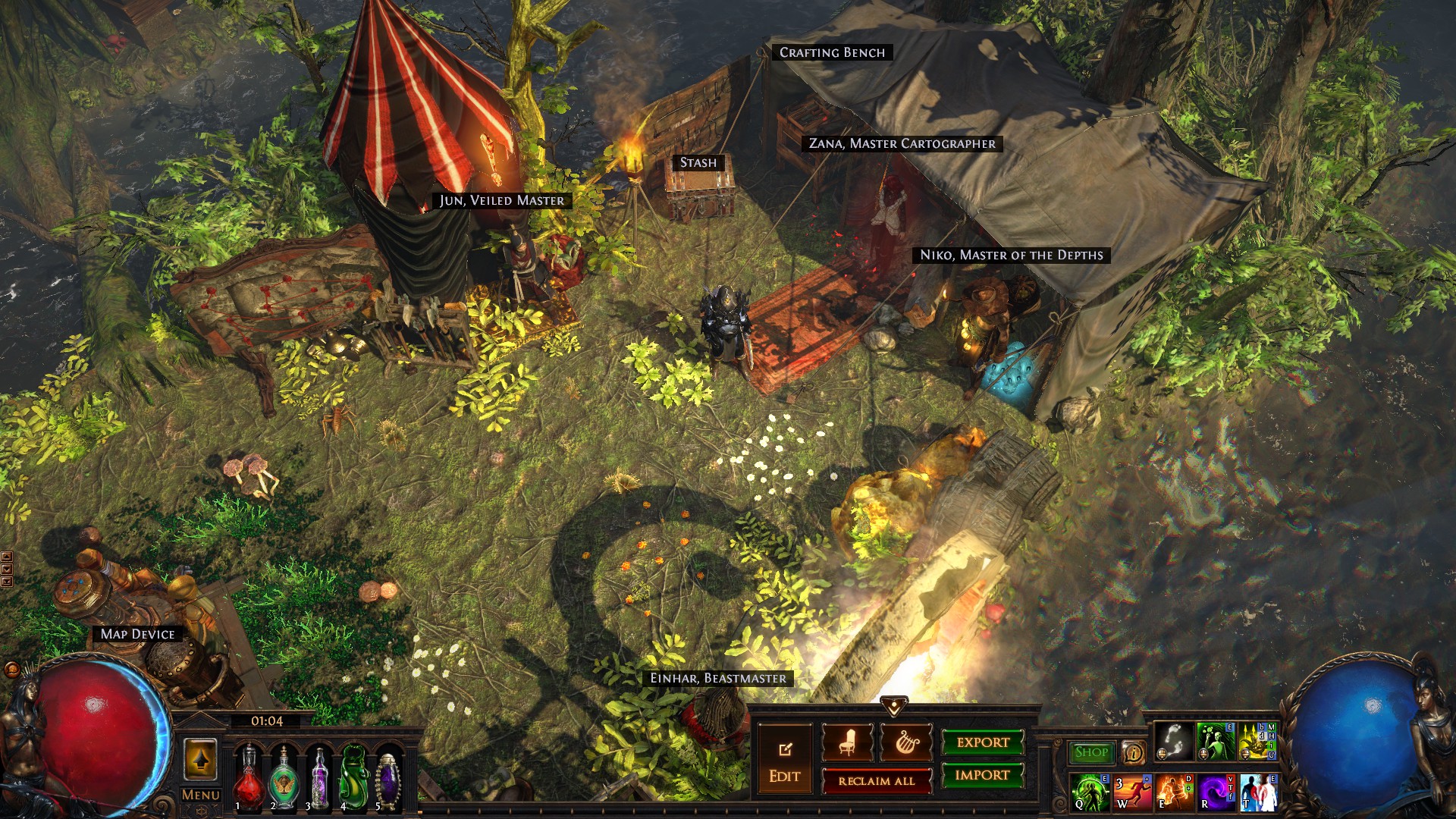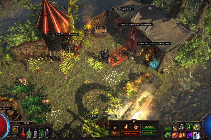 Just a little home I've been putting together for the past four leagues or so. I don't know the exact contents, and it's not great for selling as it's a bit of a hike to get to the stash from the waypoint, but is pretty effecient for mapping.
