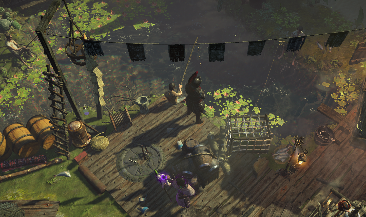 A gathering of exiles surrounding a small lake.