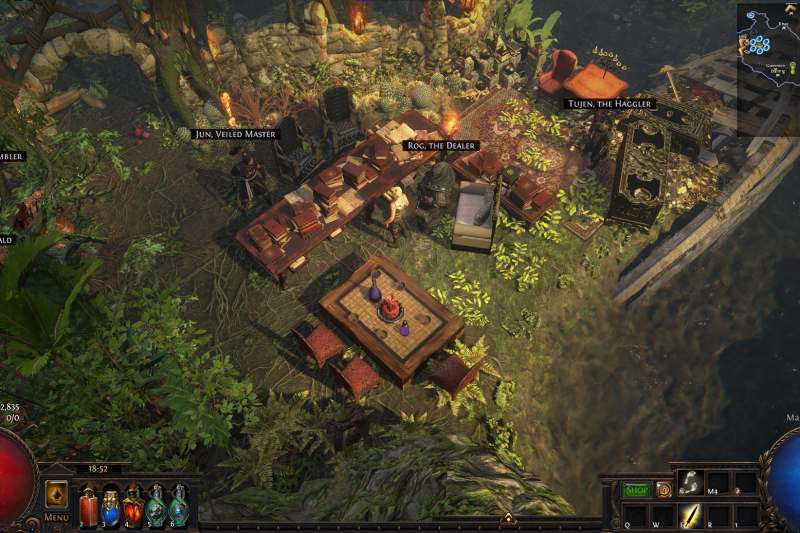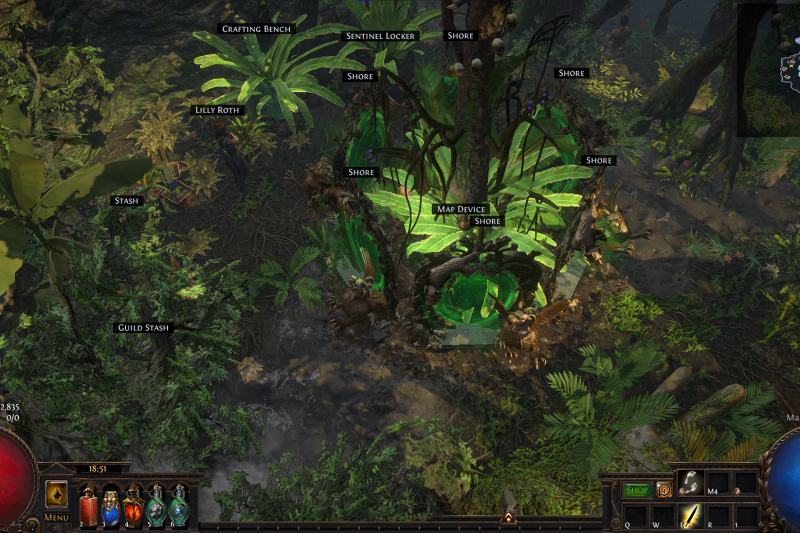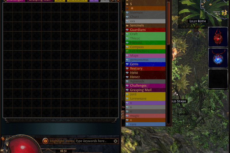 A simple but vibrant hideout. Perfect for hardcore mapping, or to relax and chat with your friends, guildies, and global. With easily accessible map device, stashes, and vendor all extremely close together, accessible by multiple people from any angle, you will have no trouble zooming through maps and quickly getting into the next one. No clipping, bumping, or wiggling to get to any of your useful items. But you don't have to live in a barren wasteland to facilitate your map clear.