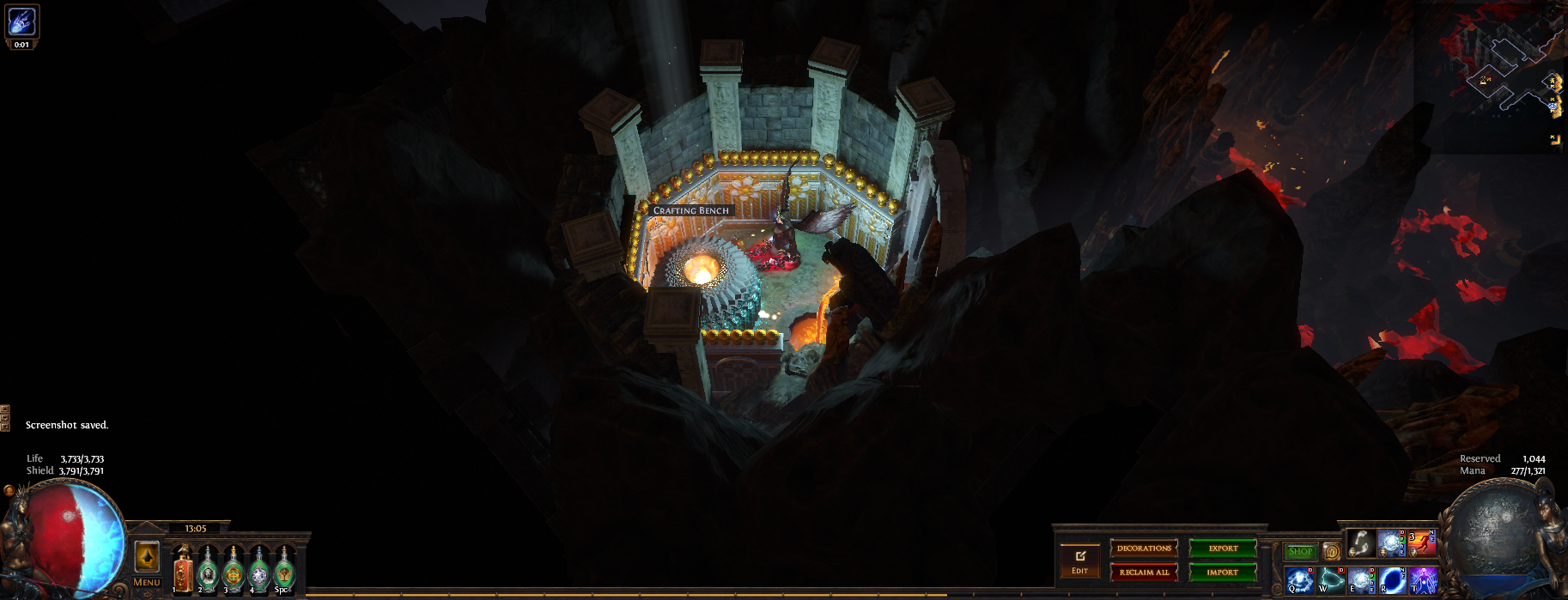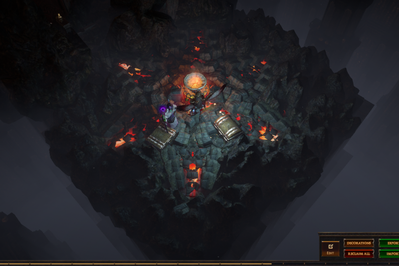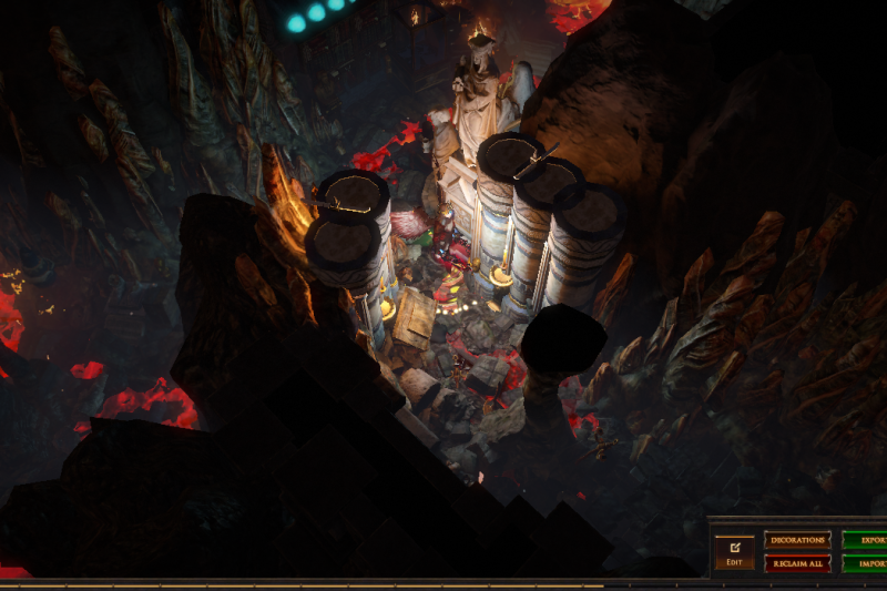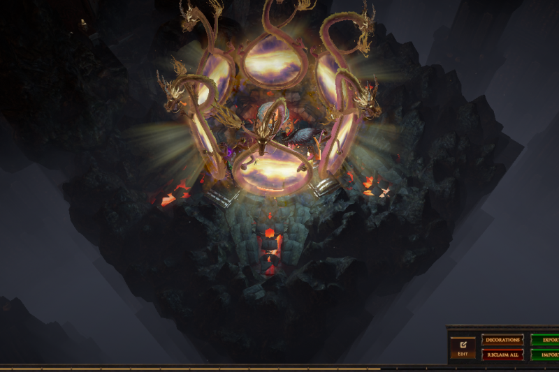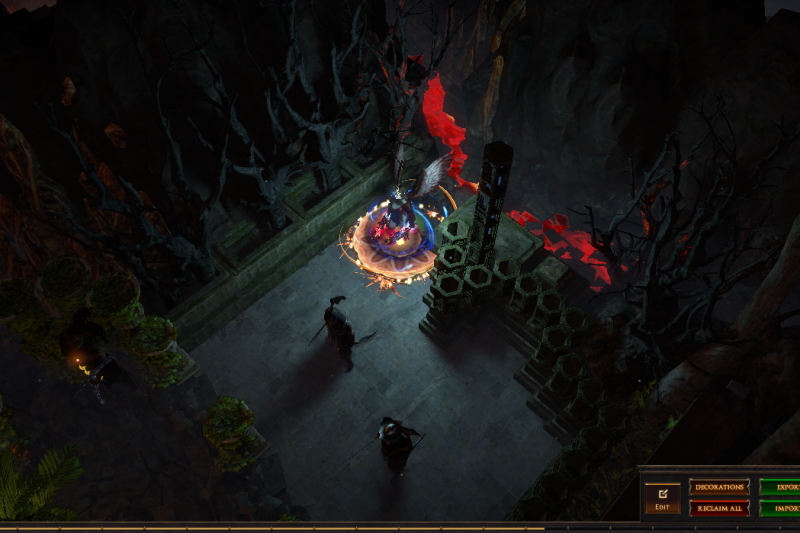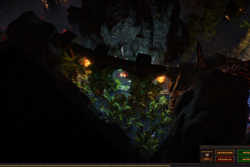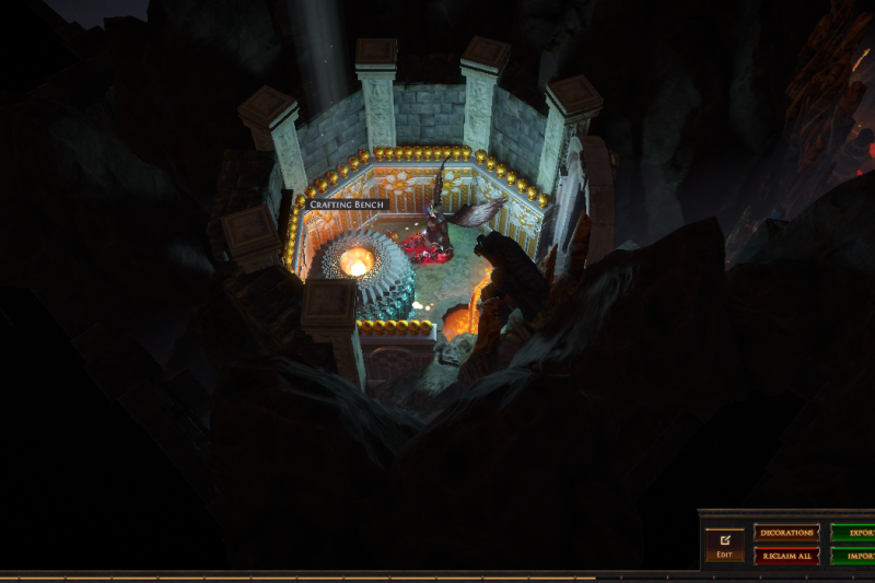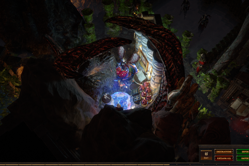 I've hidden 13 vaal figurines in this hideout, if you place your character on top of one of them (or as close as you can get) then zoom in you can see the extra details in this hideout or have a pretty background to take screenshots. 3 of them are visible from the waypoint (zoom in if you dont see them) and another is in the zoomed in picture, try to find them all :)