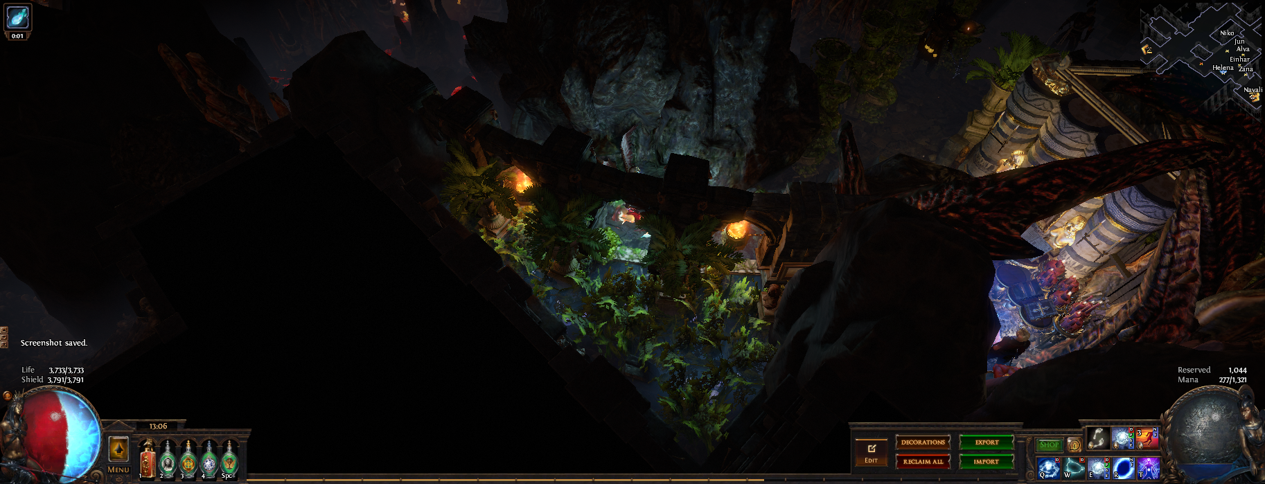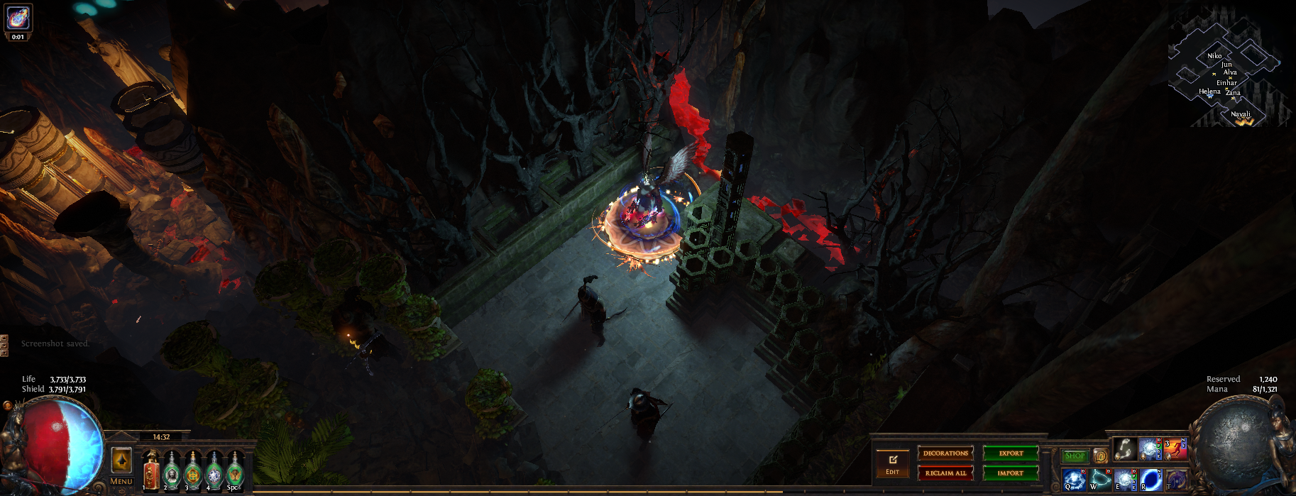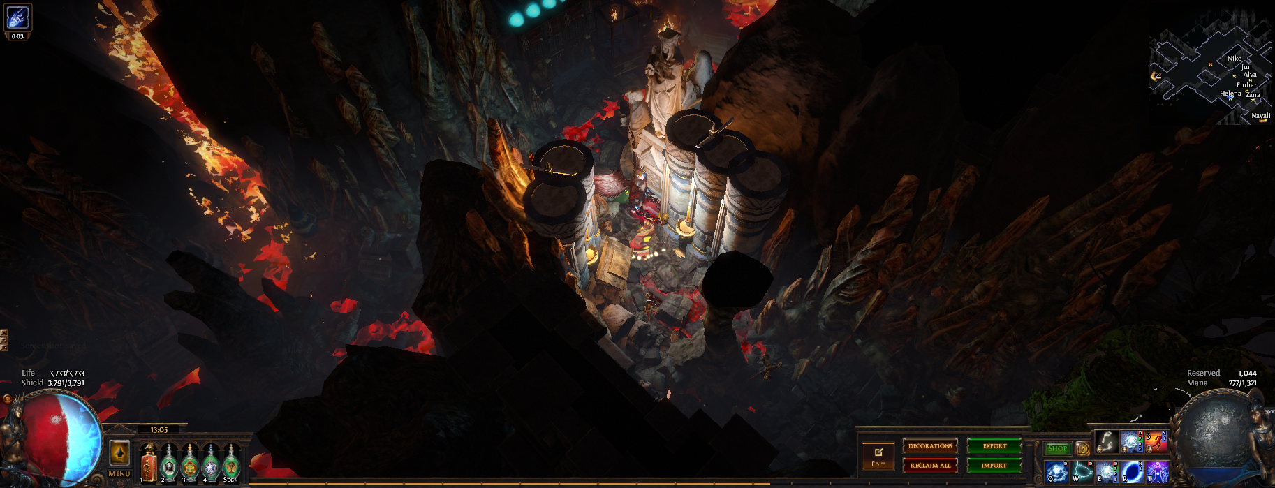I've hidden 13 vaal figurines in this hideout, if you place your character on top of one of them (or as close as you can get) then zoom in you can see the extra details in this hideout or have a pretty background to take screenshots. 3 of them are visible from the waypoint (zoom in if you dont see them) and another is in the zoomed in picture, try to find them all :)