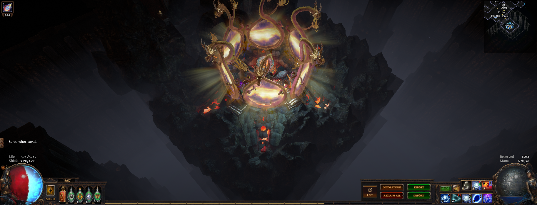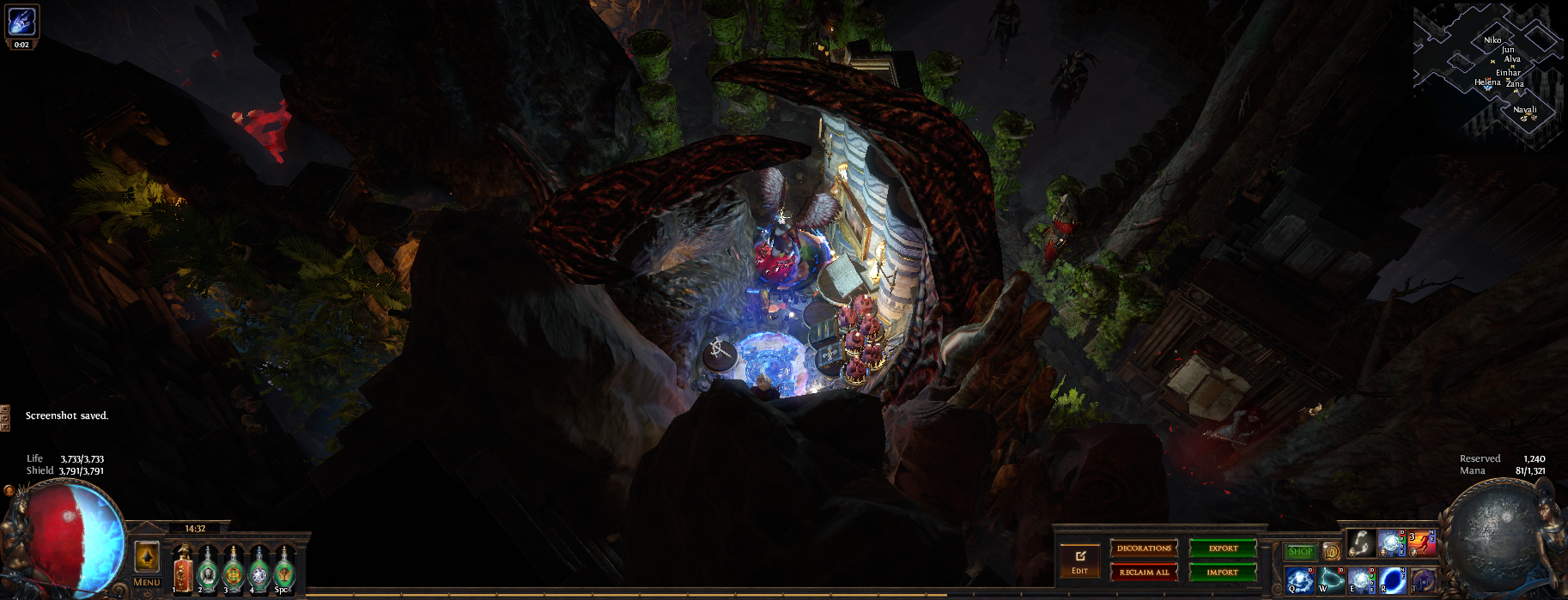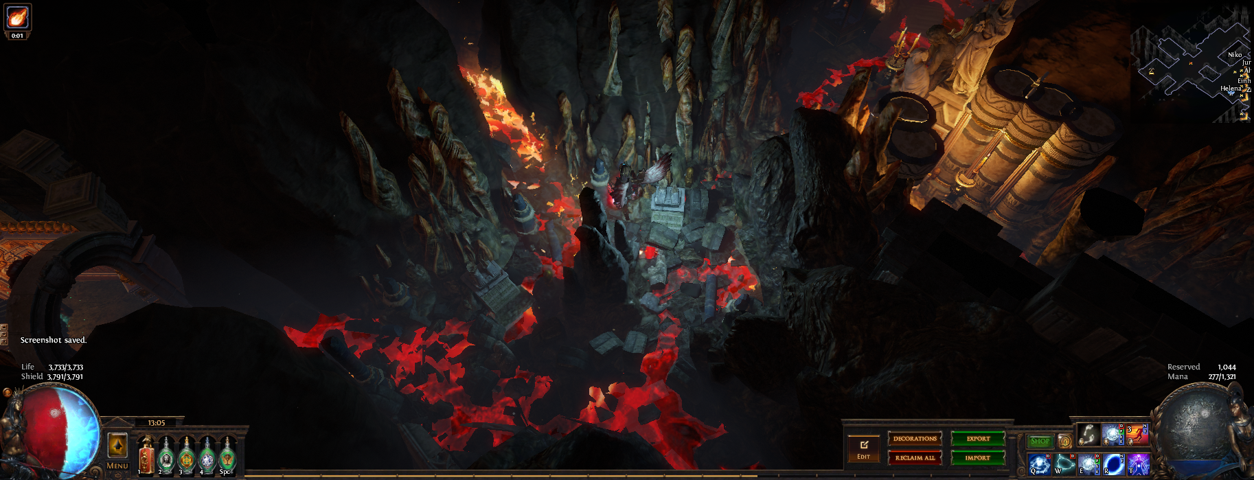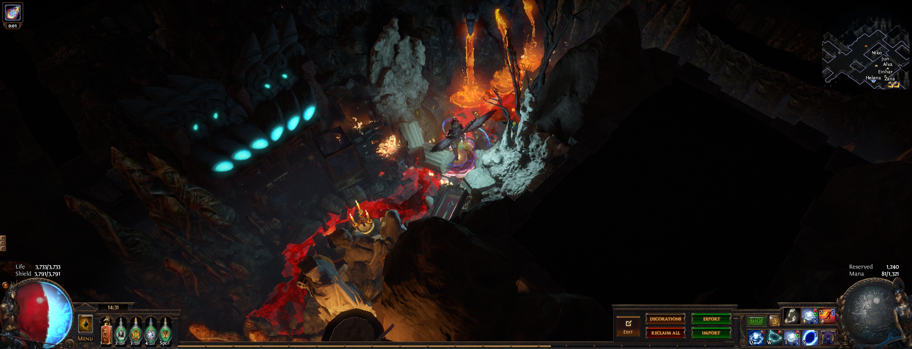 I've hidden 13 vaal figurines in this hideout, if you place your character on top of one of them (or as close as you can get) then zoom in you can see the extra details in this hideout or have a pretty background to take screenshots. 3 of them are visible from the waypoint (zoom in if you dont see them) and another is in the zoomed in picture, try to find them all :)
