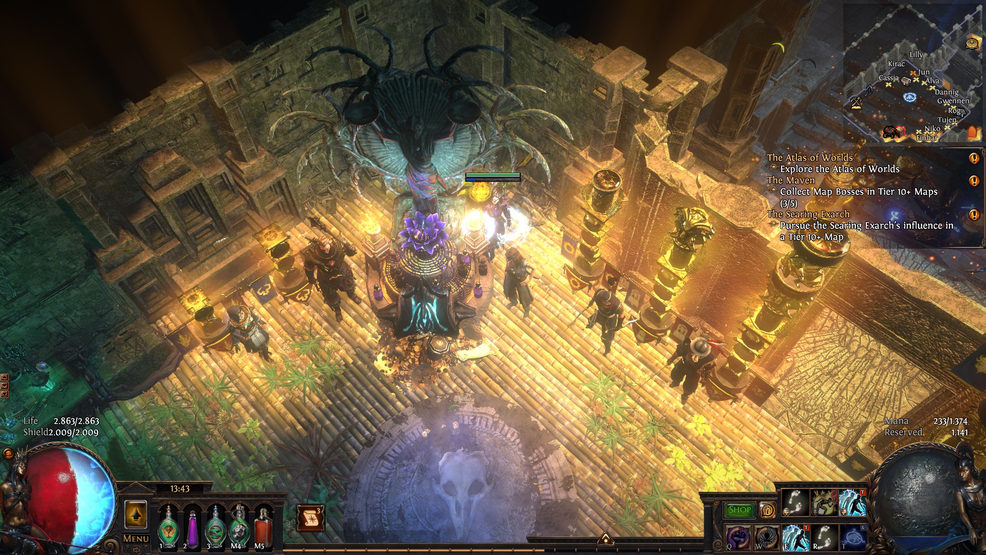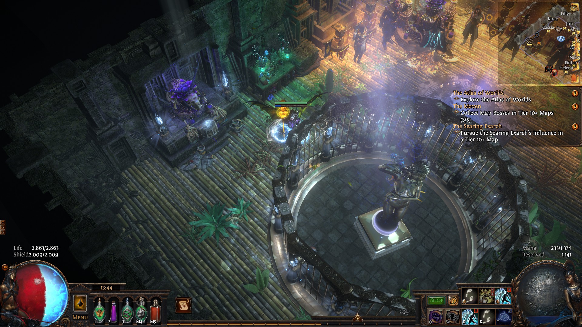 Its a simple and medium sized hideout. All league stashes, map device and npc's are easily accessible. Lilly is the main trader and visible in the stash window to quick sell.