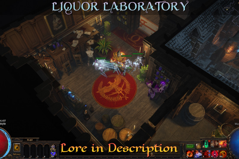 "Ah, indeed," he sighed, his gaze lost in the flickering flames of the fireplace. "This place," he gestured around, "was once a modest brewer's dream. Amir, the founder, was known not for his sword but for his unmatched skill as a distiller, his concoctions were sought after across Wraeclast, making him a fortune.