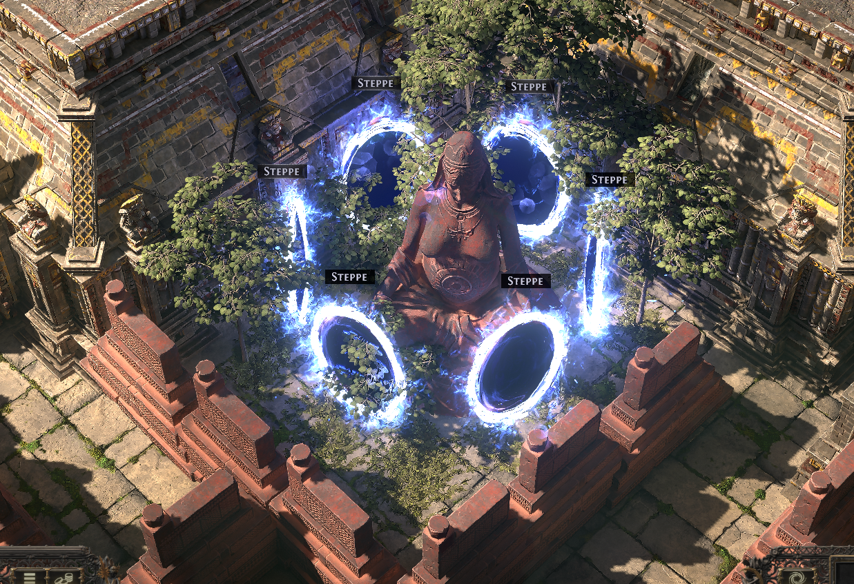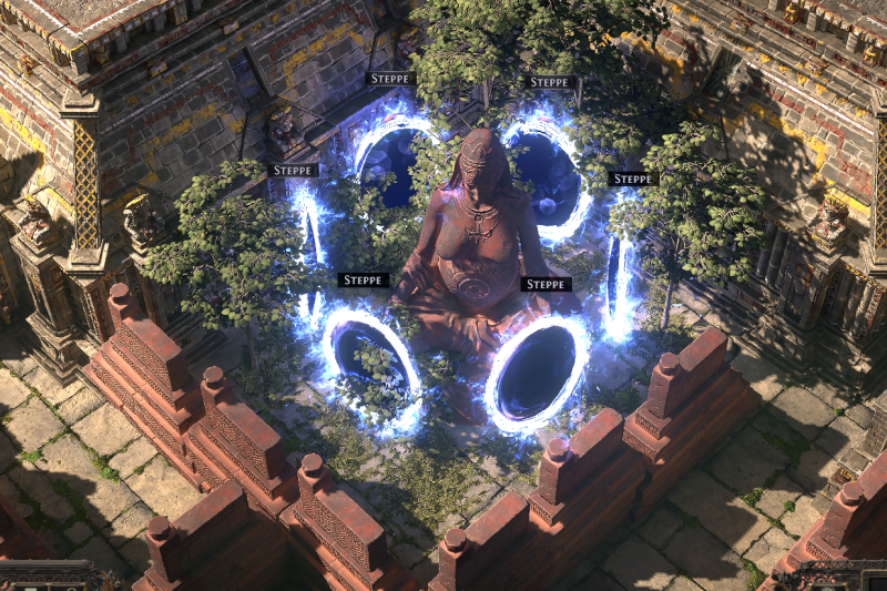 The twisted maze has a number of features to make your time between maps just a little longer. Randomly located map device, waypoint, well, npcs, and stash.