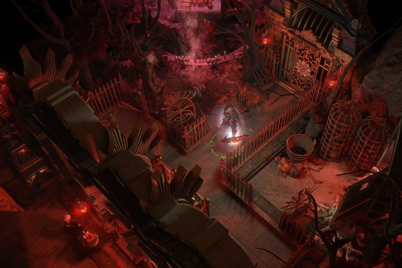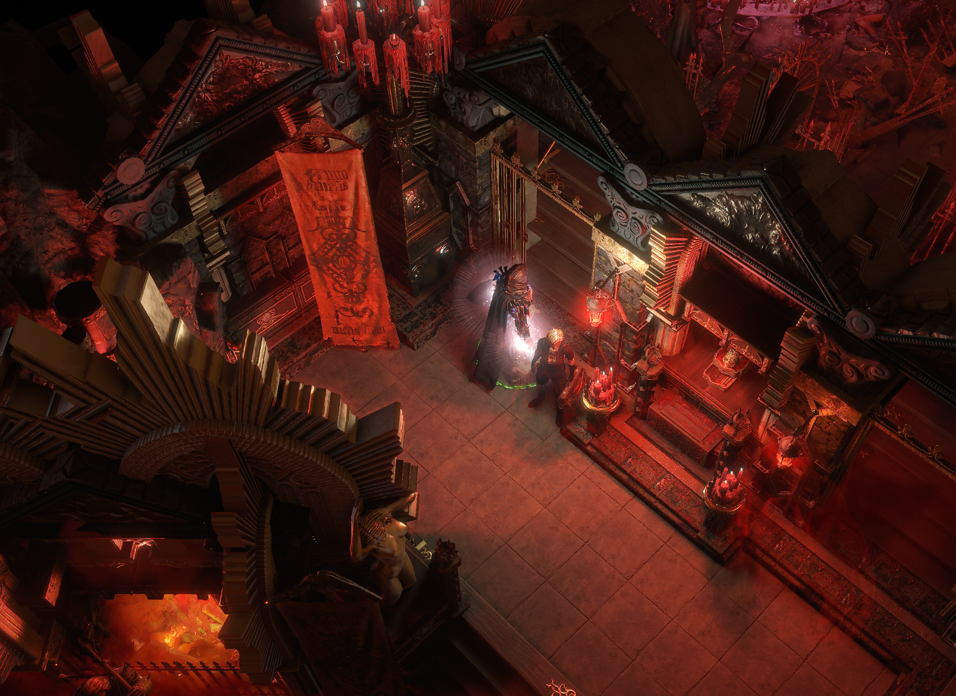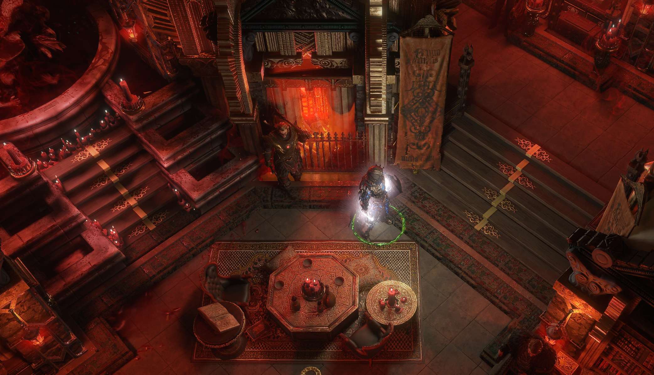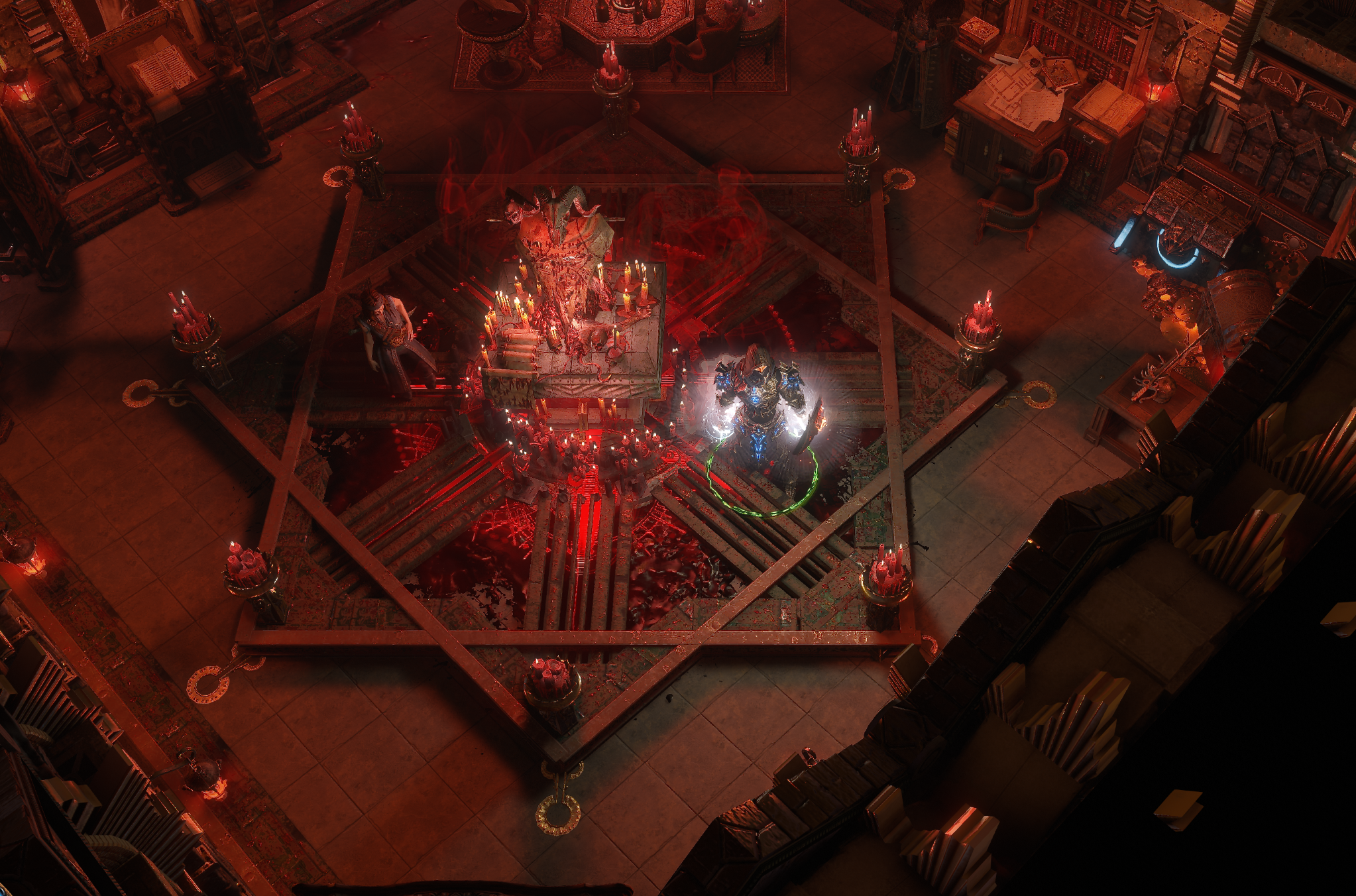 Corrupted hideout with a blood octagram ritual site