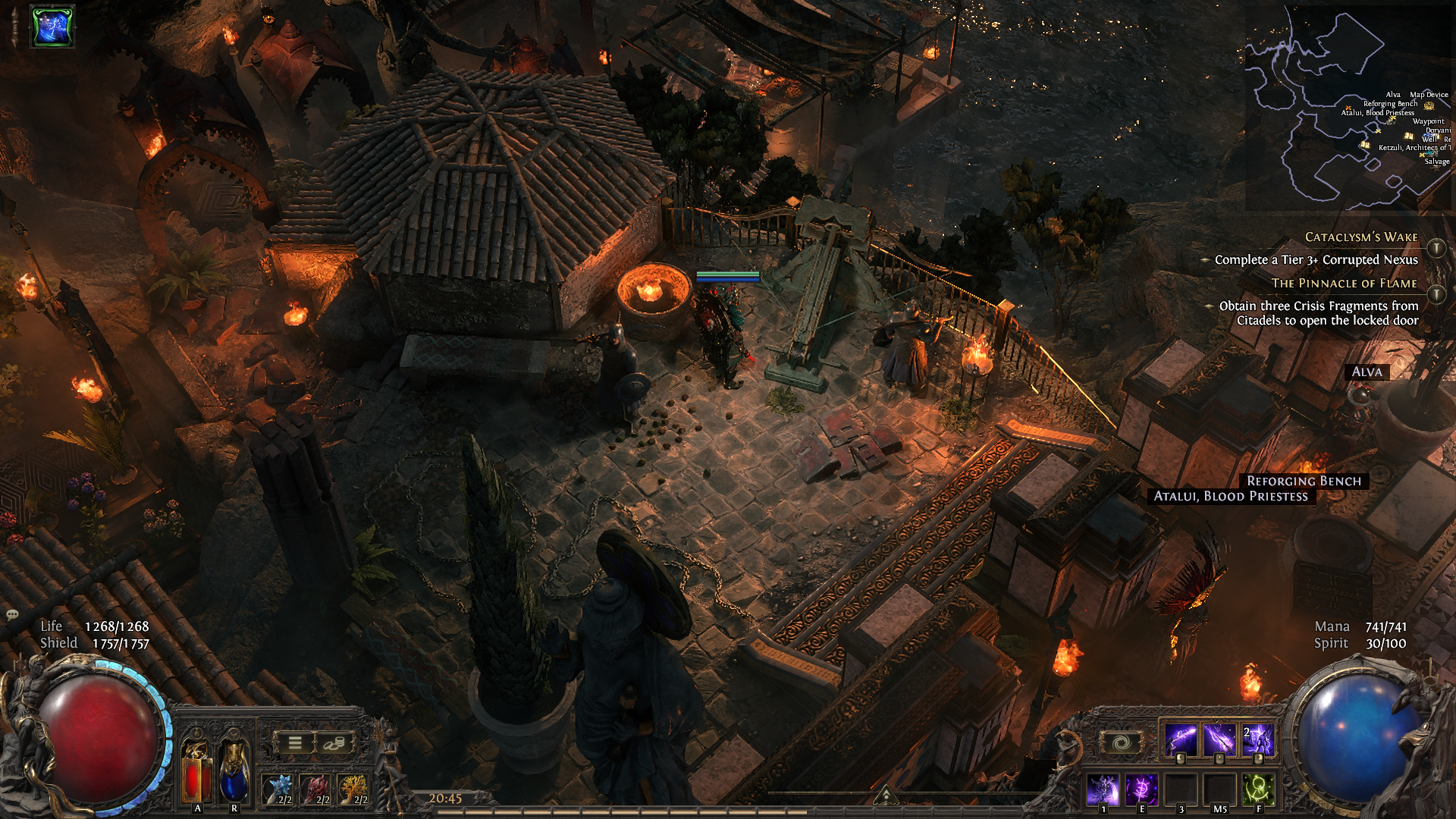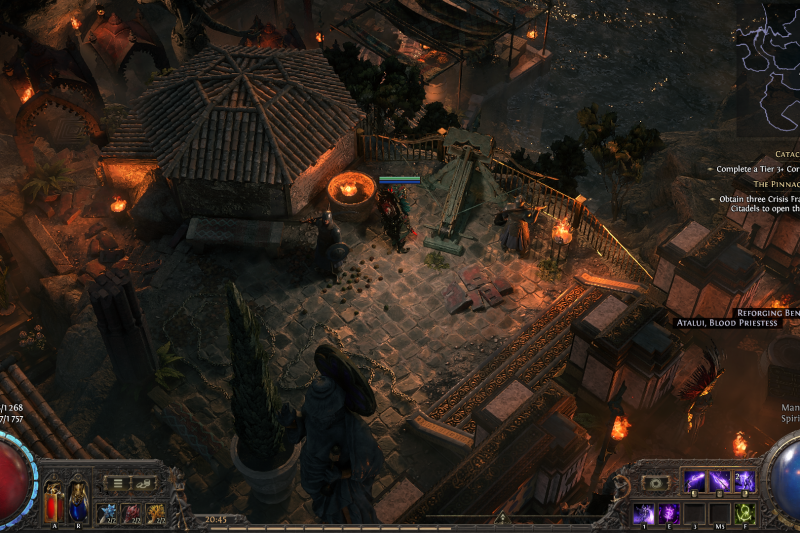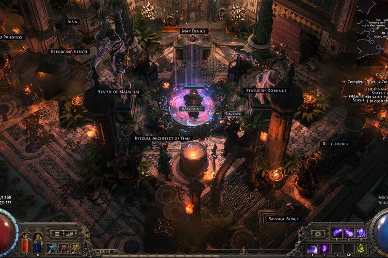 Once a symbol of divine intervention, the Beacon of Salvation now lies forgotten, its light extinguished by time and decay. Nature has reclaimed its walls, but Exiles have repurposed its heart the throne now serves as a chaotic gathering place, where merchants barter relics and the remnants of countless journeys accumulate like offerings to a god long gone.
