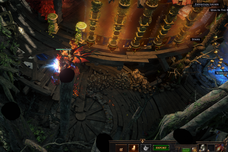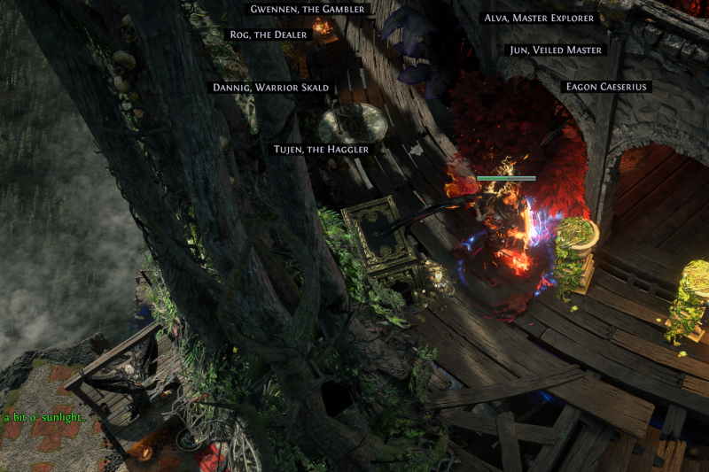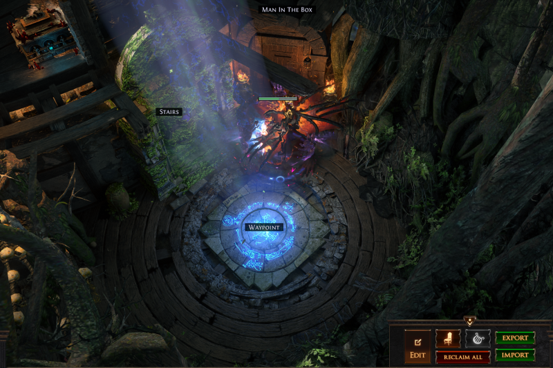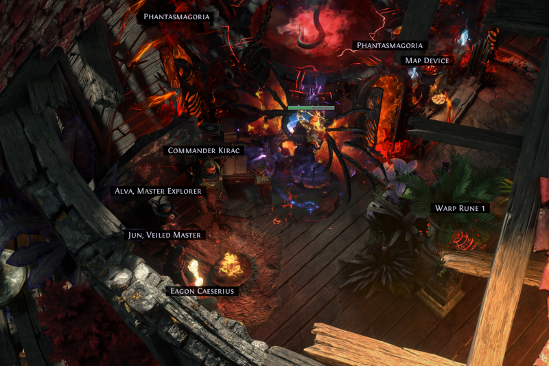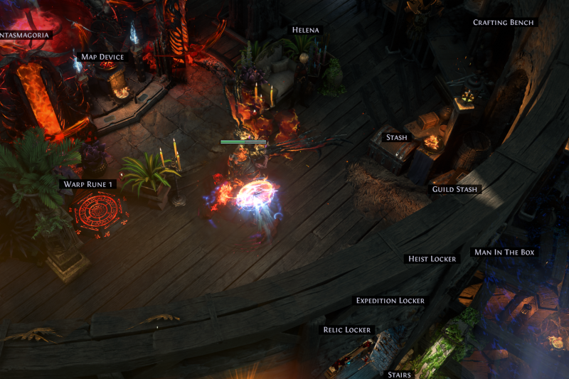Have quick access to everything you need in a neat compact area atop your magic tower (Map Device, crafting, horticraft, Trade Vendor, stashes, Helena for identifying/vendoring, expedition traders, map related people, gambling area, etc). Warp added to allow easy access back down to the waypoint, though often I use movement skills to go between the main floor and the waypoint.