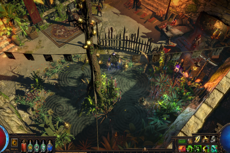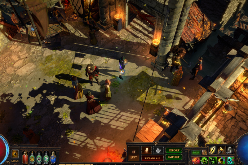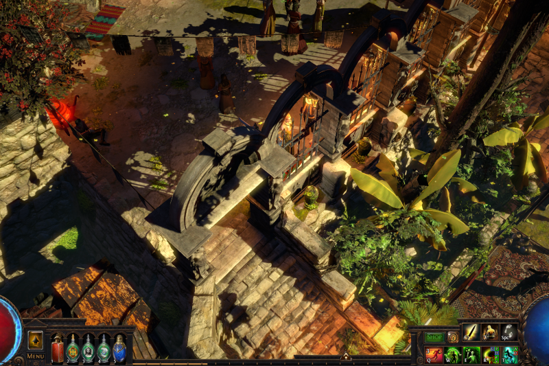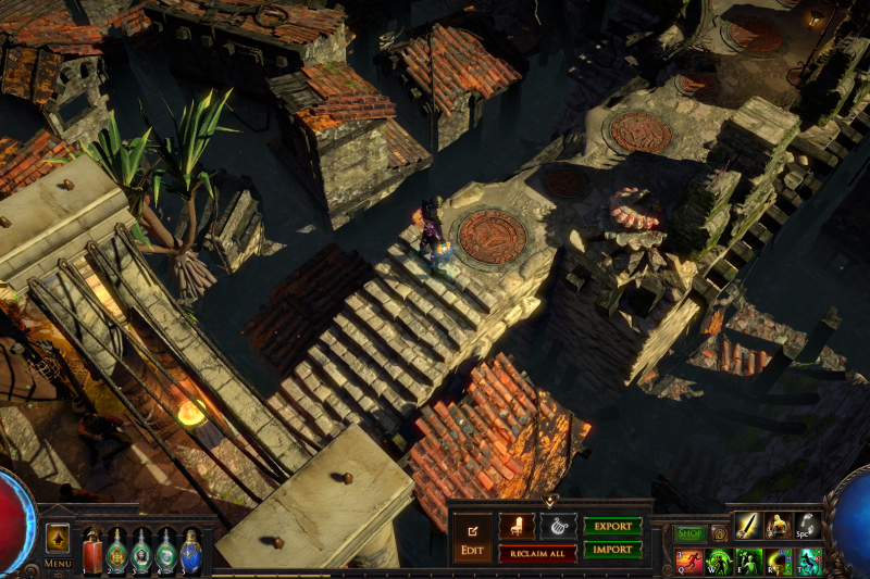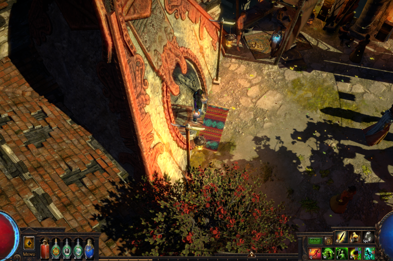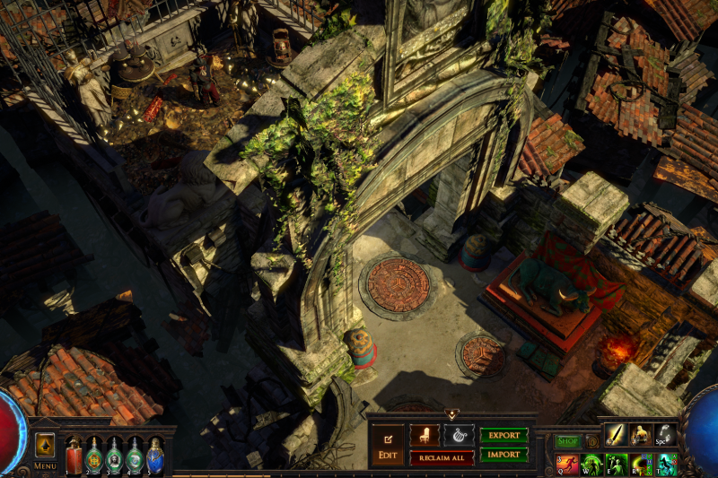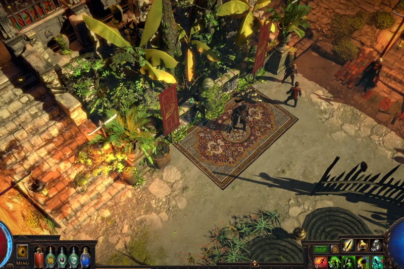 Enter the backstreets of Sarn through the Vaal pyramid and celebrate with the citizens of Wraeclast! Cassia and Niko mingle with the locals while Einhar fends off the ladies. Follow the metal mechanisms down the path to Alva's ever-growing treasure piles, don't forget to bow to the cow on your way.